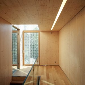 Objekt je situován na severní hranici jižně se svažujícího pozemku o ploše 6500 m², v jehož spodní části je vzrostlý les. Pozemek je součástí přírodního terénního útvaru - rokle, svažující se na k nedaleké přehradě. Vila je co do měřítka jednou z největších stavebních struktur v obci, ihned po bývalé škole, nebo památce lidové architektury - dřevěném evangelickém kostelíku z r. 1783, se kterým je také v přímém vizuálním kontaktu. Kostelík se stal předobrazem pro celkovou koncepci vily, která soudobě interpretuje dualitu exteriéru a interiéru, pro lokální architekturu tak typickou. Výsledkem je 3D fasáda z trapézového perforovaného plechu vers. celodřevěný interiér. Fasádní plech jako druhá kůže objektu, sluno- a větrolam, připomínající krajkářskou tradici regionu a propůjčující hmotě specifické měřítko; integrující dům do okolní přírody. Jedná se o místně tradiční dřevostavbu, posunutou technologicky na úroveň současnosti. Křížem lepené dřevěné panely dávají vzniknout dřevěnce III. tisíciletí. Koncepce vnitřních prostor domu je variací na téma „plan libre“. Obytné místnosti orientovány na jih, ze severu vstupní dvůr, garáž a hospodářské prostory domu. Velkoplošné prosklení, zajišťující propojení exteriéru s interiérem, okolní příroda se stává integrální součástí interiéru domu. V jihozápadní části domu prostorová koncepce graduje dvoupodlažním obytným prostorem s galerií, knihovnou a rohovým oknem s výhledem na blízký evangelický kostelík. Architektem byla navržena řada nábytku a doplňků (komody, noční stolky, jídelní stůl, kuchyně, radiátory, mýdelníky, věšáky), které přispívají k dotaženosti a integritě díla. Objekt je navržen jako pasivní dům s inteligentním systémem řízení budovy, vytápěný tepelnými čerpadly. Materiály – dřevo, AL-plech, kov, sklo, kámen.