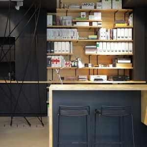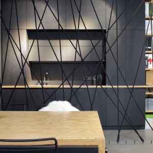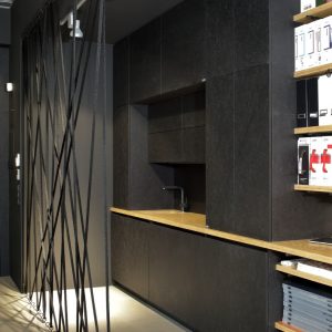 Showroom poskytuje vlastní prostor pro setkavaní s klienty, oddělené pracovní zázemí, velké úložné prostory i kuchyňské zázemí.